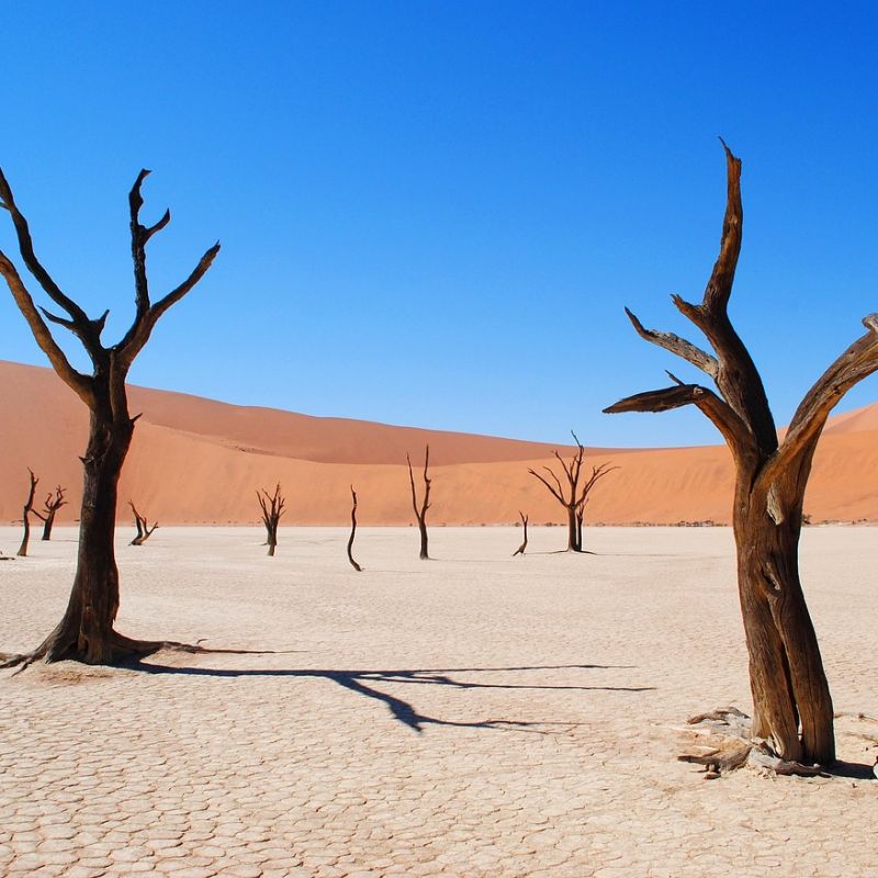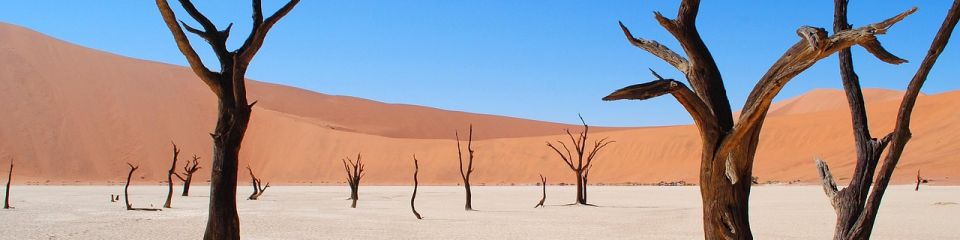 První paprsky při východu slunce barví písečné duny do oranžova, kontrastující, s bledě modrou oblohou a bílými pánvemi. Navštívíme kouzelnoupánev Deadvlei, zaplněnou pravěkými kostrami stromů, kde řeka Tsauchab náhle ukončila svůj tok. Na zpáteční cestě absolvujeme procházku vhluboké rokli kaňonu Sesriem, vytvarovanou erozí. Odpoledne cestujeme pustými vlnitými kopci přes obratník Kozoroha a přes dvě geologickyfascinující údolí - údolí řeky Gaub a údolí řeky Kuiseb v srdci národního parku Namib-Naukluft, který je známý svou rozmanitostí pouštních druhůrostlin a zvěře. Uvidíme také žijící fosilii a dramatickou Měsíční krajinu. Po příjezdu do města Swakopmund, směsi německé architektury a africkéatmosféry, zůstaneme dvě noci u Pobřeží Koster.